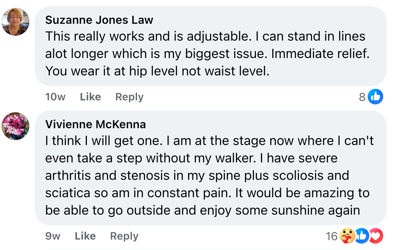 Long-term benefit: You stop organizing your entire day around where you can sit. You can enjoy activities again without that nagging voice telling you to find a place to rest. Life opens back up.